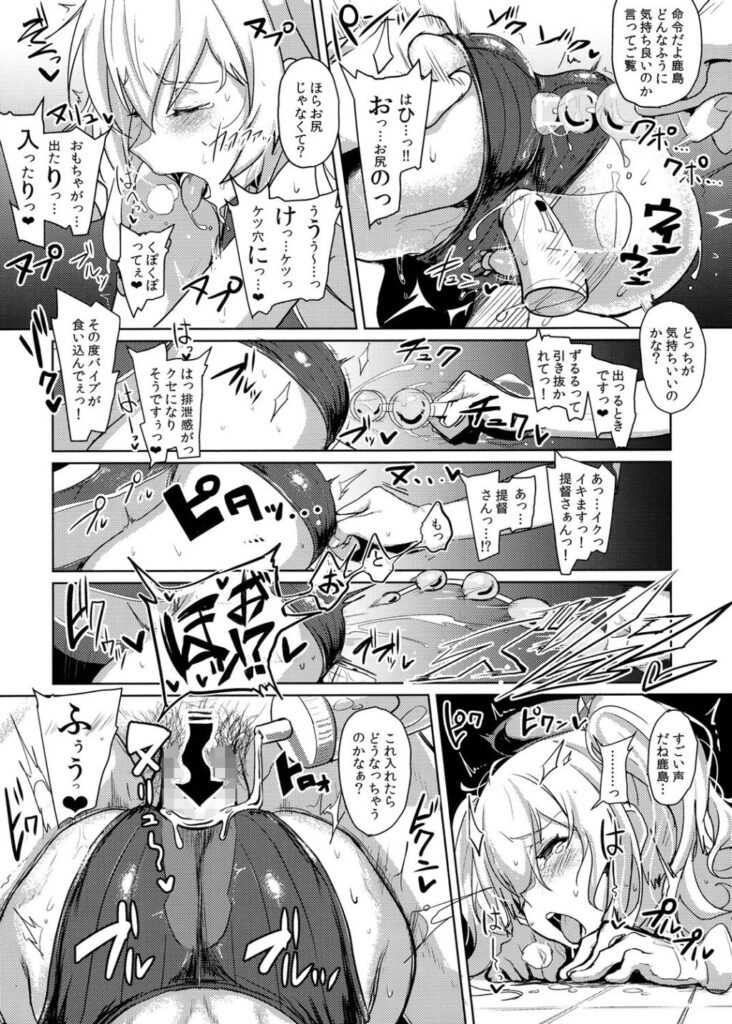 提督は自分の息子を鹿島の競泳水着で堪能しまくり、水着を引っ張って食い込ませたりやりたい放題な提督。そのままベッドで続きをしようとするも案の定見つかって怒られてしまう。