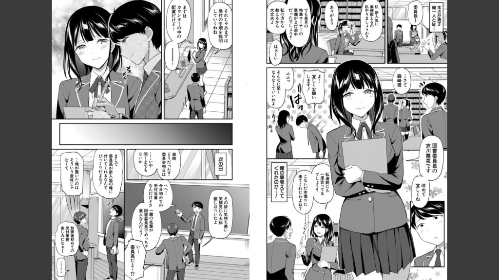 主人公の森崎信吾は、図書室で出会った図書委員長の衣川舞菜に誘われ図書委員に入ることになった。友達が何やら図書委員のよろしくない噂を知っており、止めようとするも森崎の意思を尊重すると背中を押す。
