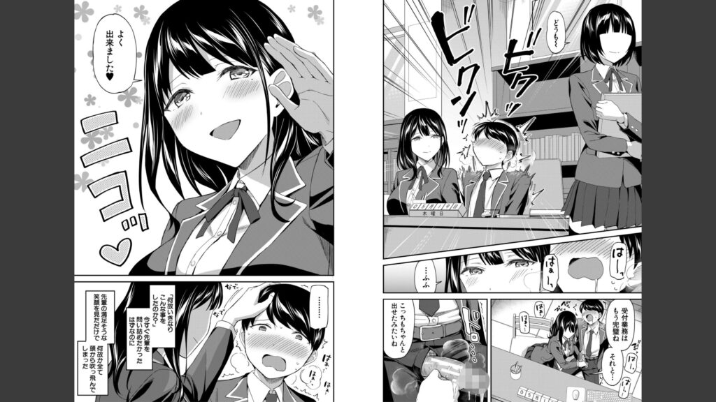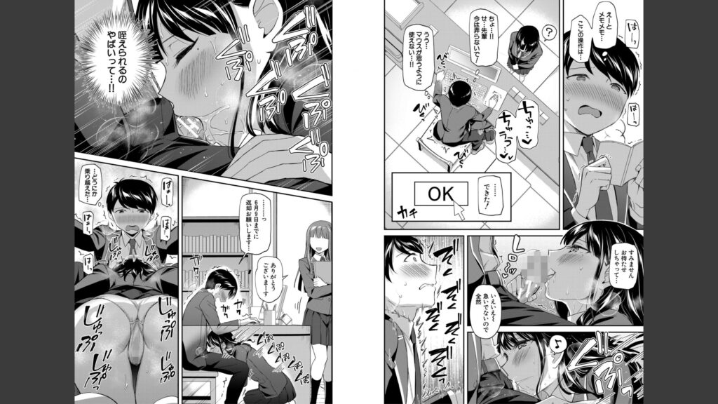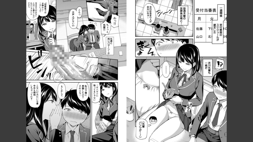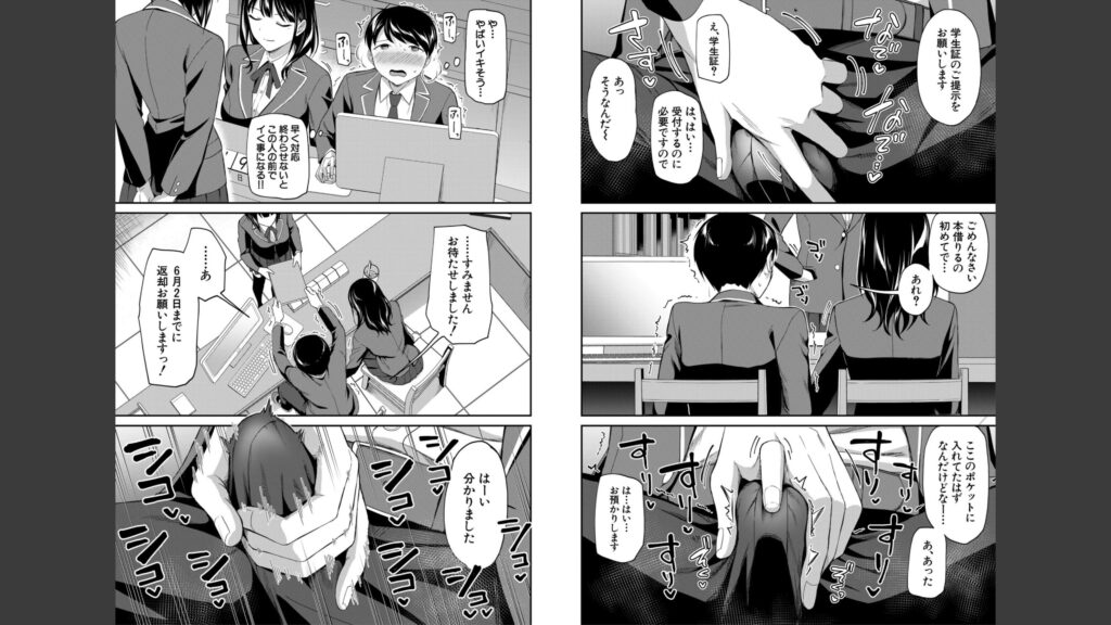 舞菜の手コキから一週間。また彼女と図書委員の業務で同席することになった森崎。いきなりパンチラしてきたかと思いきや、舞菜は接客中にもかかわらずまさかの行動に出る。