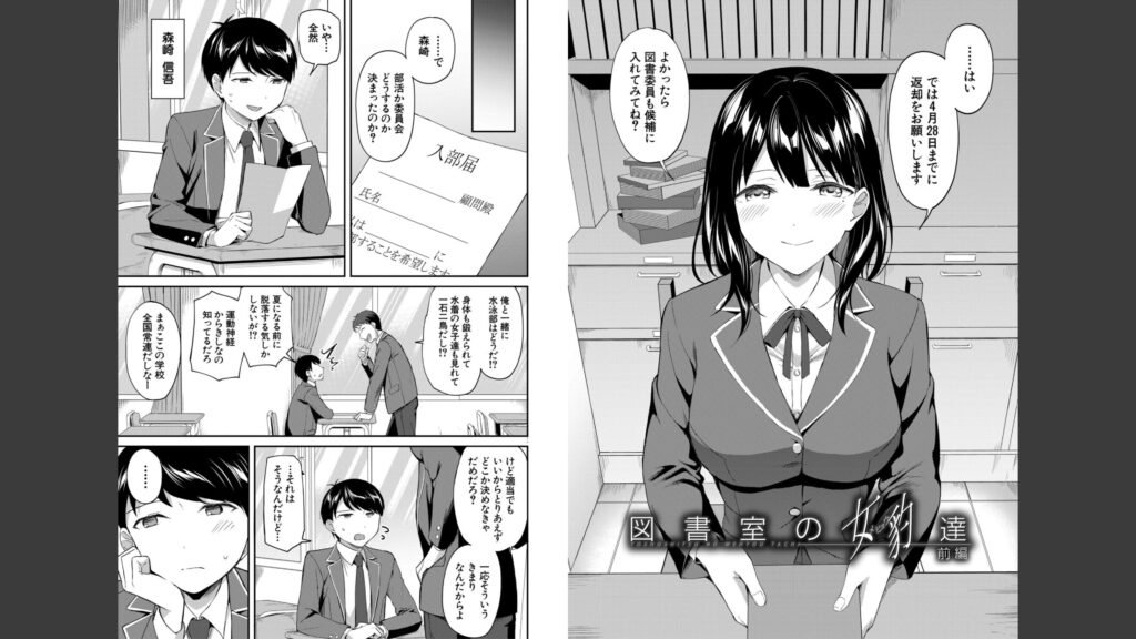 「図書室のハーレム、生徒会も先生も!」の詳細を見る巨乳美人につられて図書委員になった結果