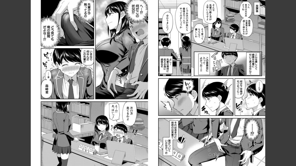 しかも物語はここでは終わらず、噂を聞きつけた元図書委員の先生たちともハーレムエッチが勃発。どうやら図書委員会はもともと肉食系女子のたまり場で、イメージ的にもそういった事情をカモフラージュしやすいという事実も発覚。